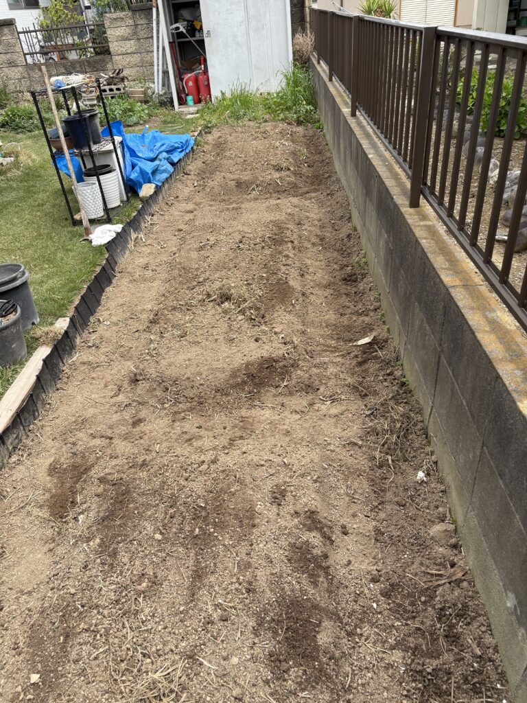 堆肥肥料ともみ殻くん炭をすき込んで耕したあと、畝をたてました。