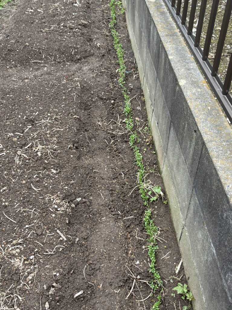 畝を整えたあと、畝のはじの通路部分に緑肥の種をまきました。えん麦やクローバーの種をミックスです。
