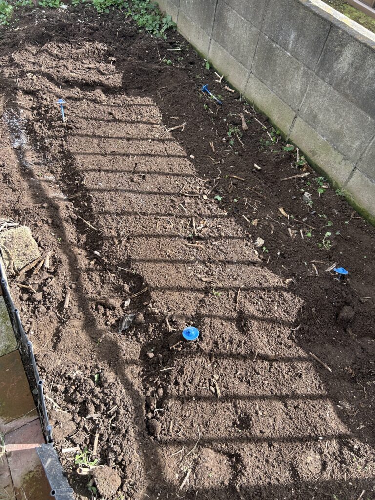 堆肥を混ぜ込みながら耕し、植え付け用の畝を立てました。